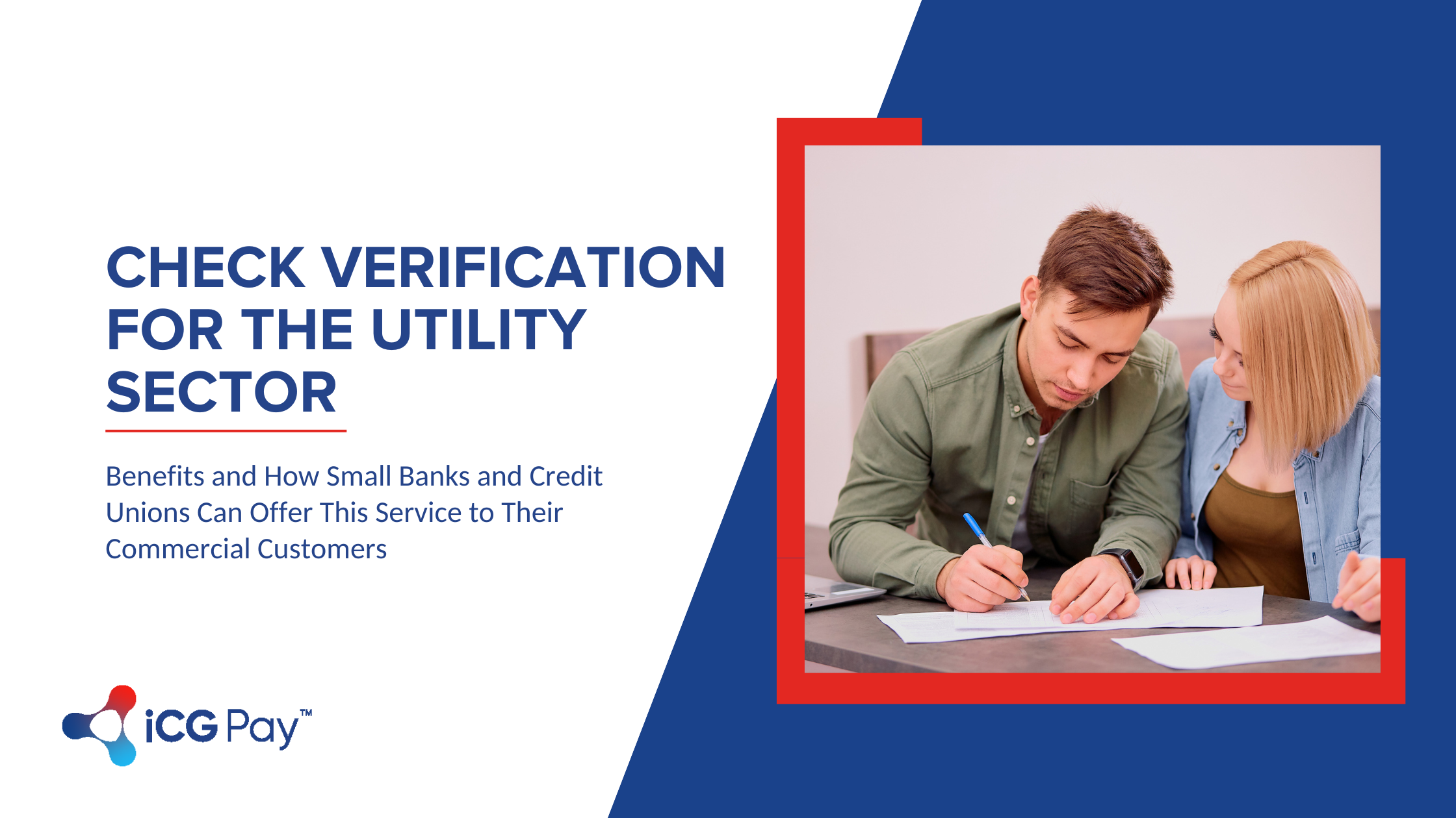 Adopting check verification can help reduce losses for commercial clients due to bounced checks, improve operational efficiency, and increase customer satisfaction. If you need to provide these services to utility companies, check out iCG and learn more about our check verification service, iCG-Verify.